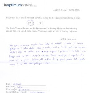 Brzo čitanje je vještina koju um treba prihvatiti. Da bi ovladati s njom potreban je proces da bi se to dogodilo. Teoretski, tehniku možete usvojiti za sat vremena, ali da bi se ona implementirala u praksu potrebno je proći kroz metodičke korake implementacije i primjene. Naši educirani treneri s dugogodišnjim iskustvom na stručan... >Više